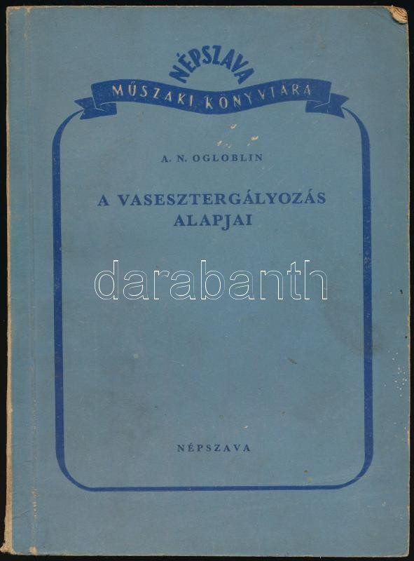 Leírás: A. N. Ogloblin: A vasesztergályozás alapjai. Vas- és Fémipari sorozat. Bp., 1951, Népszava. Kiadói papírkötés.