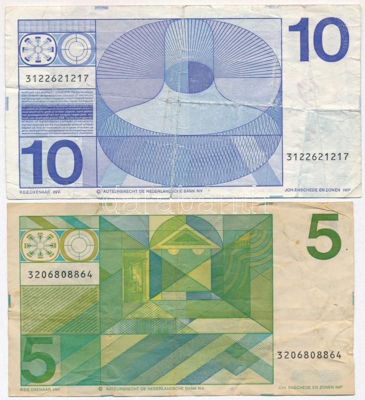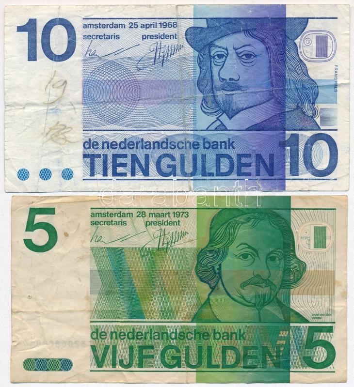 Netherlands 1968. 10 Gulden + 1973. 5 Gulden "Joost van den Vondel" C:F small tear