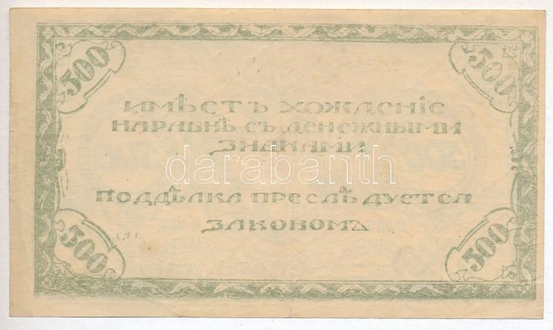 Russian ... https://www.darabanth.com/hu/302-Gyorsarveres/302.0/Numizmatika/Kulfoldi-bankjegyek~200027/Orosz-Polgarhaboru-Kelet-Sziberia-Csita-1920-500R-TIII--Russian-Civil-War-East-Siberia-~II1622841