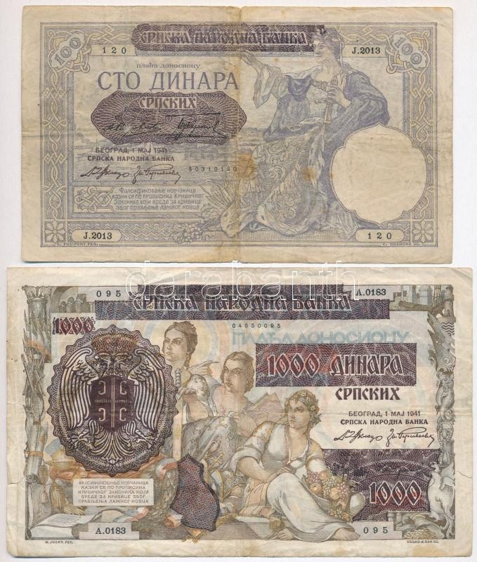 Szerbia / Német megszállás 1941. 100D + 1000D mindkettő jugoszláv bankjegyre nyomva T:III,III-