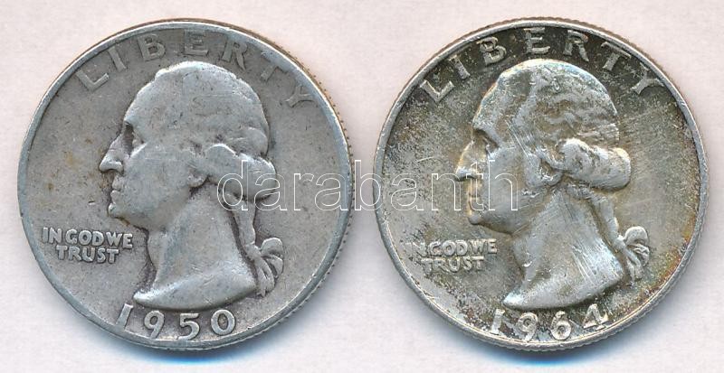 Leírás: Amerikai Egyesült Államok 1950-1964. 1/4$ Ag "Washington" (2x) T:2- ph.