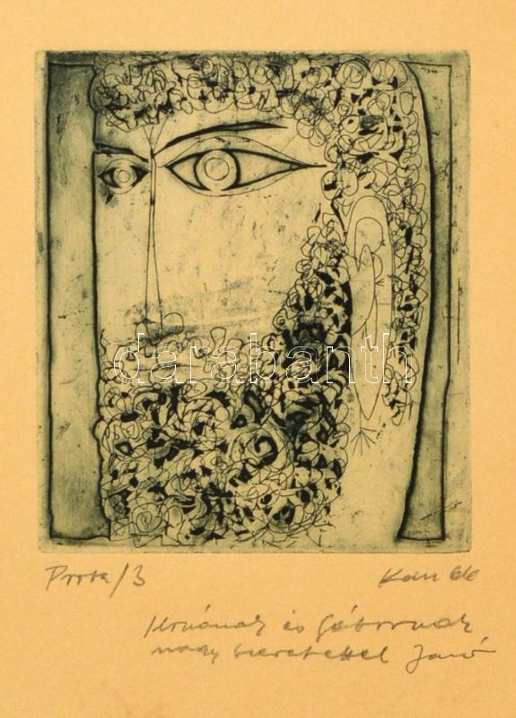 Leírás: Kass János (1927-2010): Mózes.Próba nyomat, papír, jelzett, üvegezett keretben, 17×15 cm