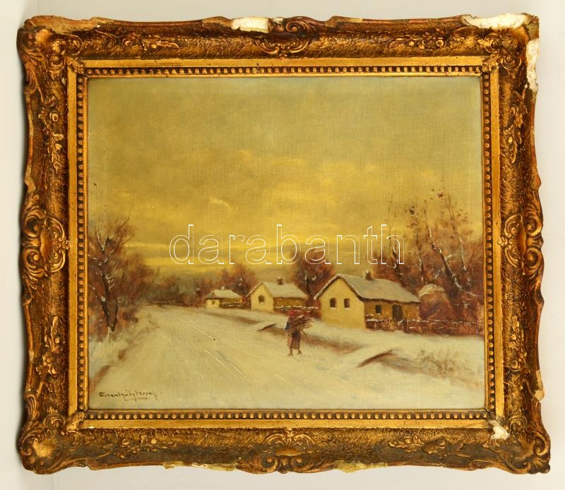 Szentgály Ferencz (?-?): Havas falusi utca. Olaj, vászon, jelzett, sér... https://www.darabanth.com/hu/303-Gyorsarveres/303.0/Festmeny-mutargy-papirregiseg-egyeb/Festmenyek-es-grafikak~1/Szentgaly-Ferencz--Havas-falusi-utca-Olaj-vaszon-jelzett-serult-keretben-40C39750-cm~II1629261