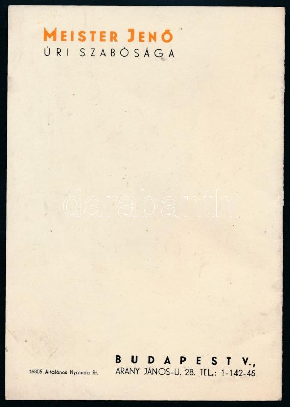 cca 1930 Meister Jenő úri szabósága reklám katalógus és árjegyzék, 16,... https://www.darabanth.com/hu/303-Gyorsarveres/303.0/Festmeny-mutargy-papirregiseg-egyeb/Nyomtatvanyok~29/cca-1930-Meister-Jeno-uri-szabosaga-reklam-katalogus-es-arjegyzek-16-5x11-5-cm~II1632440