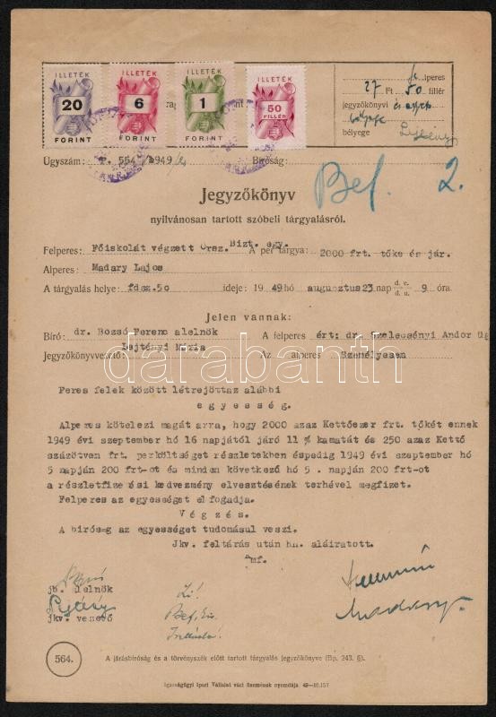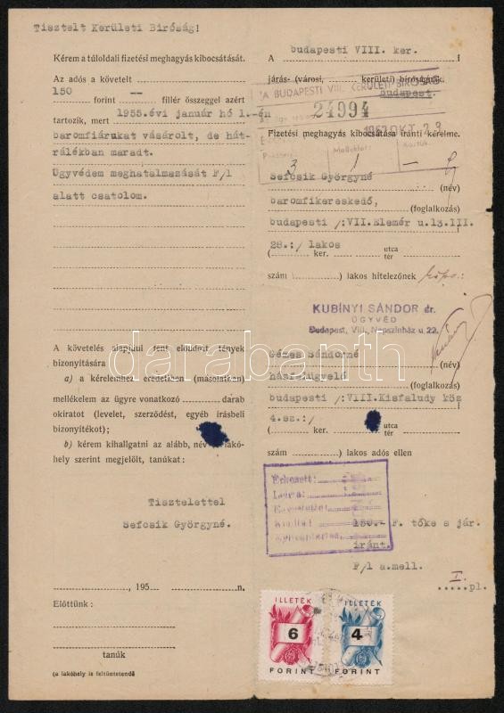 Leírás: cca 1949-1959 10 db okmány okmánybélyegekkel