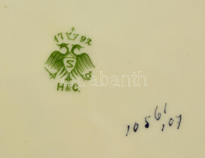 Leírás: H&C Schlaggenwald virágmintás porcelán mélytányér, részben kézzel festett, jelzett, kis kopásnyomokkal, d: 24 cm