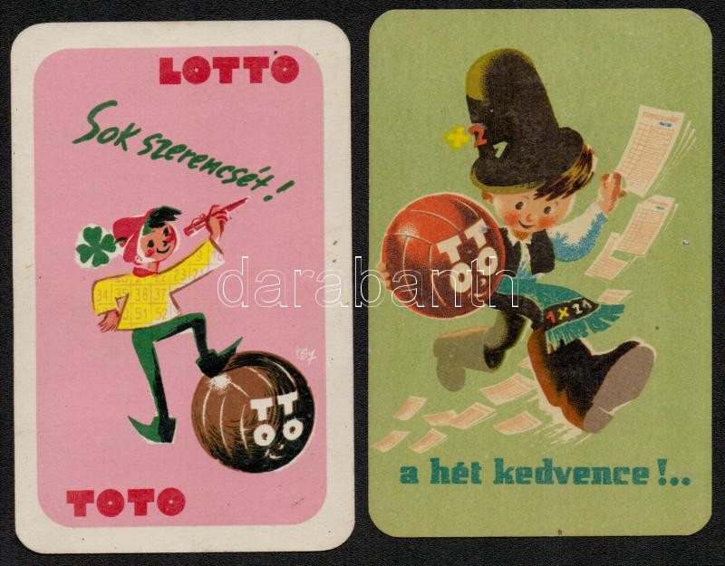 1957, 1959 Toto és Lottó kártyanaptárak a második hátán tollal írás https://www.darabanth.com/hu/303-Gyorsarveres/303.0/Festmeny-mutargy-papirregiseg-egyeb/Reklam~32/1957-1959-Toto-es-Lotto-kartyanaptarak-a-masodik-hatan-tollal-iras~II1634209