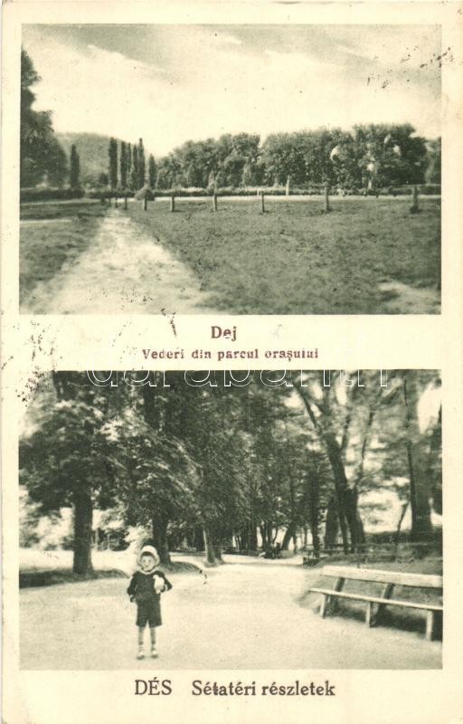 Leírás: Dés, Dej; Sétatéri részletek / Vederi din parcul orasului / promenade park "1940 Dés visszatért" So. Stpl