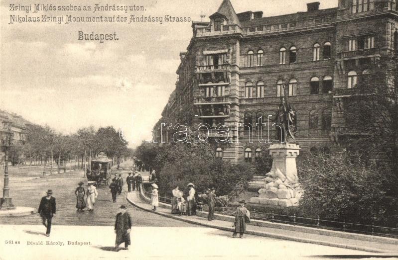 Leírás: Budapest VI. Andrássy út, Zrínyi Miklós szobor, Divald Károly 561. sz. (EK)