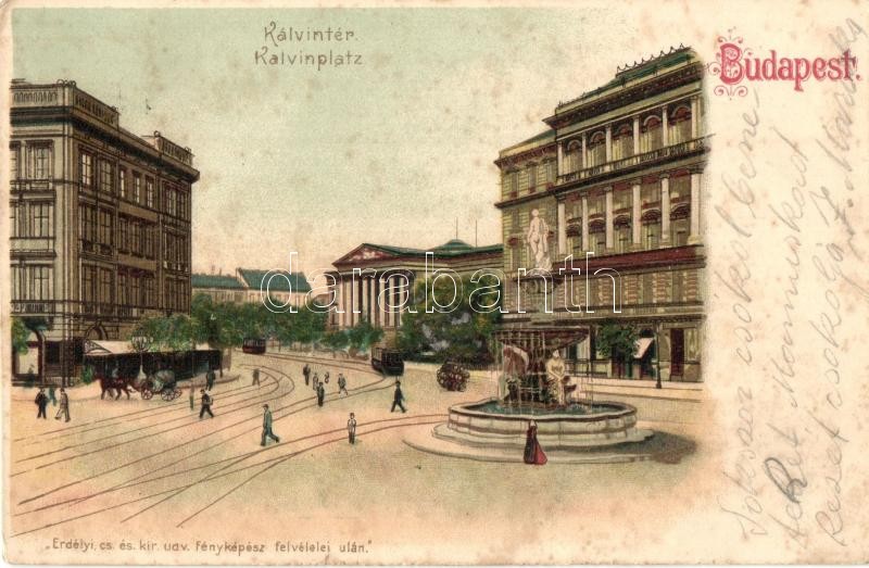 Budapest VIII. Kálvin tér, villamos, szökőkút. Erdélyi felvételei után... https://www.darabanth.com/hu/303-Gyorsarveres/303.0/Kepeslapok/Magyarorszag~200005/Budapest-VIII-Kalvin-ter-villamos-szokokut-Erdelyi-felvetelei-utan-litho-kis-szakadas-~II1632160