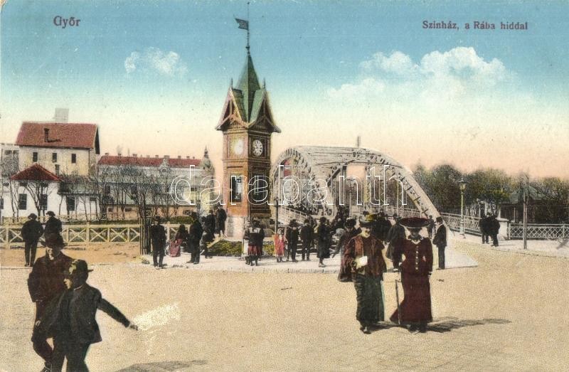 Győr, színház, Rába híd (Rb) https://www.darabanth.com/hu/303-Gyorsarveres/303.0/Kepeslapok/Magyarorszag~200005/Gyor-szinhaz-Raba-hid-Rb~II1628041