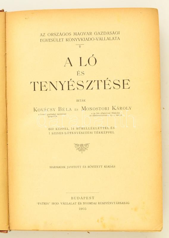 Kovácsy Béla - Monostori Károly A ló és tenyésztése. 600 képpel, 14 műmelléklettel és 1 színes lótenyésztési térképpel.