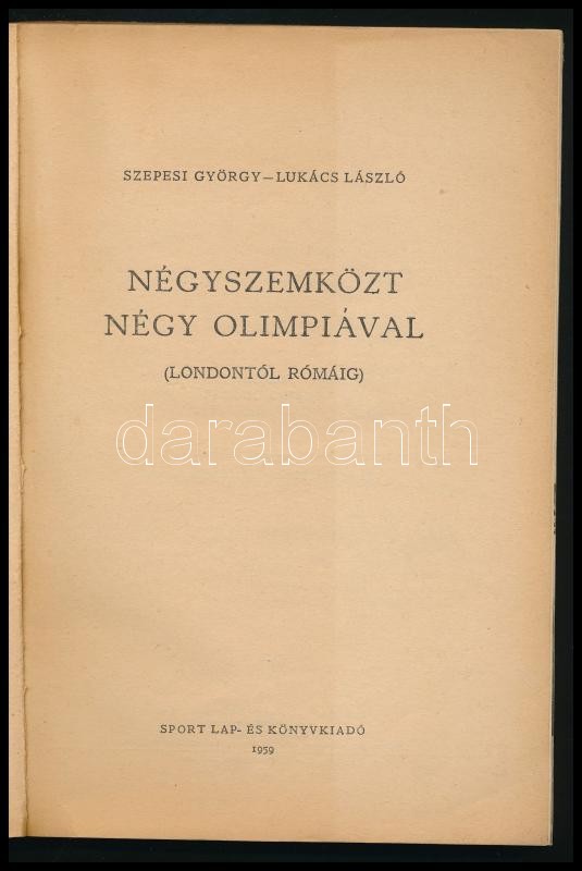 Leírás: Szepesi György, Lukács László: Négyszemközt négy olimpiával. (Londontól Rómáig.) Bp., 1959, Sport. Kiadói papírkötés.