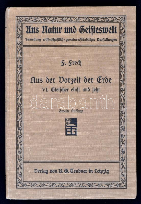 Frech, Fritz: Aus der Vorzeit der Erde VI. Gletscher einst und jetzt. Leipzig, 1911, B. G. Teubner (Aus Natur und Geisteswelt 61.). Díszes vászonkötésben, jó állapotban.