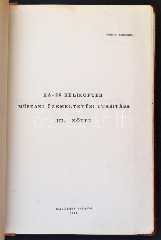 KA-26 helikopter műszaki üzemeltetési utasítása. 3. köt. 1976, Repülőg... https://www.darabanth.com/hu/303-Gyorsarveres/303.0/Konyvek/Konyvek-Technika~500011/KA-26-helikopter-muszaki-uzemeltetesi-utasitasa-3-kot-1976-Repulogepes-Szolgalat-Szol~II1632711