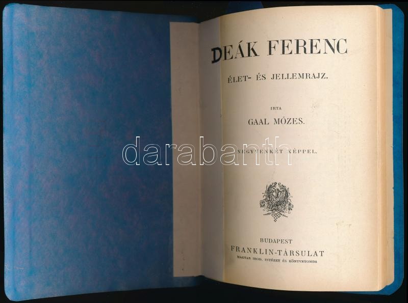 Gaal Mózes: Deák Ferenc. Élet és jellemrajz. Bp., é.n., Franklin, 139+1 p. Átkötött papírkötés, az eredeti elülső borító a borítóra kasírozták, a címlapja javított.