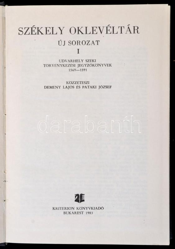 Székely oklevéltár. Új sorozat. I. kötet. Udvarhely széki Törvénykezés... https://www.darabanth.com/hu/303-Gyorsarveres/303.0/Konyvek/Konyvek-Tortenelem~500004/Szekely-okleveltar-Uj-sorozat-I-kotet-Udvarhely-szeki-Torvenykezesi-jegyzokonyvek-156~II1601373