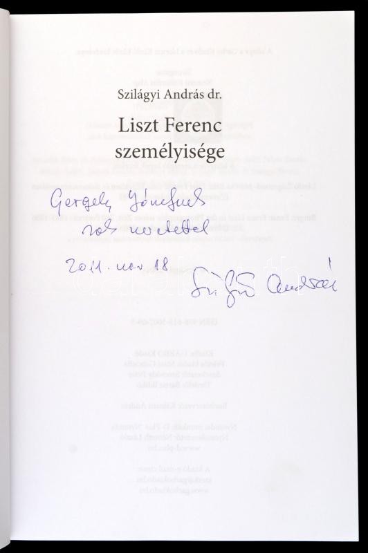 Szilágyi András: Liszt Ferenc személyisége. Bp., [2011], Garbo - Líceu... https://www.darabanth.com/hu/303-Gyorsarveres/303.0/Konyvek/Konyvek-Tortenelem~500004/Szilagyi-Andras-Liszt-Ferenc-szemelyisege-Bp-2011-Garbo--Liceum-A-szerzo-dedikacioj~II1615785