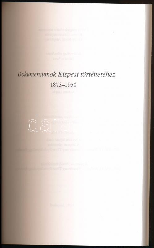 Dokumentumok Kispest történetéhez 1873-1950. Budapest Történetének Forrásai. Összeállította, szerkesztette és jegyzetekkel ellátta: Szabó Csaba. Bp., 1999, Budapest Főváros Levéltára. Kiadói papírkötés. Jó állapotban.