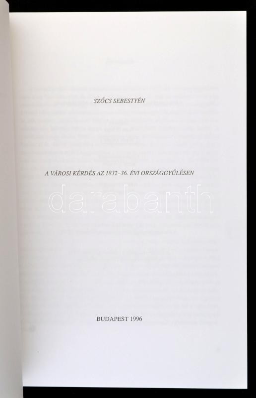 Szőcs Sebestyén: A városi kérdés az 1832-36. évi országgyűlésen. Várostörténeti tanulmányok. Bp., 1996, Budapest Főváros Levéltára. Kiadói papírkötés. Jó állapotban.