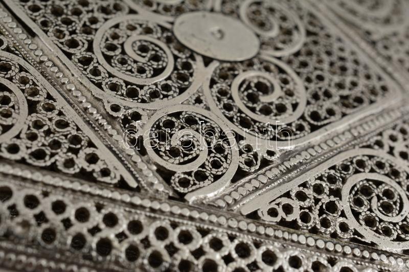 Ezüst(Ag) filigrán cigarettatárca, jelzett, 7,8x8,8 cm, nettó: 157,3 g https://www.darabanth.com/hu/303-Gyorsarveres/303.0/Nemesfem-Disztargyak-Orak-es-Ekszerek/Nemesfem-Disztargyak-Orak-es-Ekszerek~31/EzustAg-filigran-cigarettatarca-jelzett-7-8x8-8-cm-netto-157-3-g~II1614566