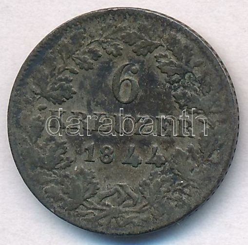 Német Államok / Hohenzollern-Sigmaringen 1844. 6kr Ag "Károly" T:2-,3