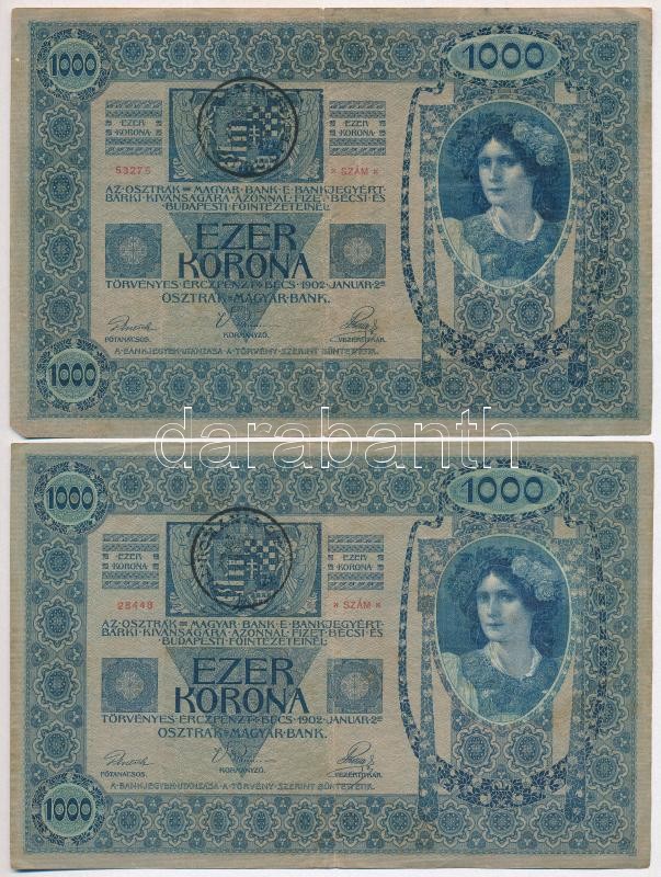 1902. 1000K (3x) mindhárom román felülbélyegzéssel T:III kis szakadás https://www.darabanth.com/hu/303-Gyorsarveres/303.0/Numizmatika/Magyar-bankjegyek~300007/1902-1000K-3x-mindharom-roman-felulbelyegzessel-TIII-kis-szakadas~II1632070