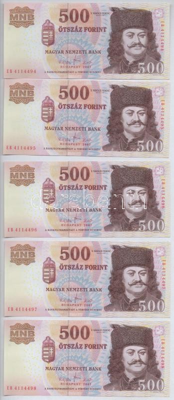 2007. 500Ft "EB" (10x) sorszámkövetők T:I https://www.darabanth.com/hu/303-Gyorsarveres/303.0/Numizmatika/Magyar-bankjegyek~300007/2007-500Ft-EB-10x-sorszamkovetok-TI~II1613362