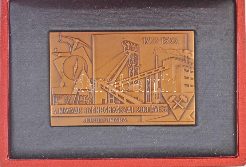 Leírás: 1953. "A magyar szénbányászat 200 éves jubileumára 1753-1953" Br plakett tokban (100x65mm) T:2
