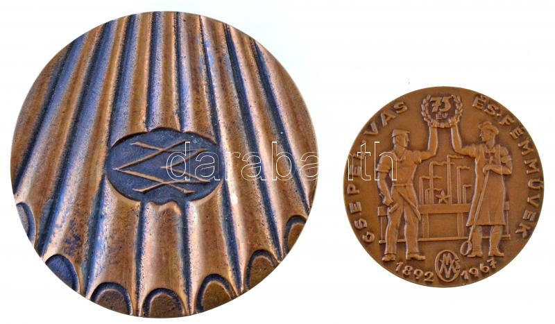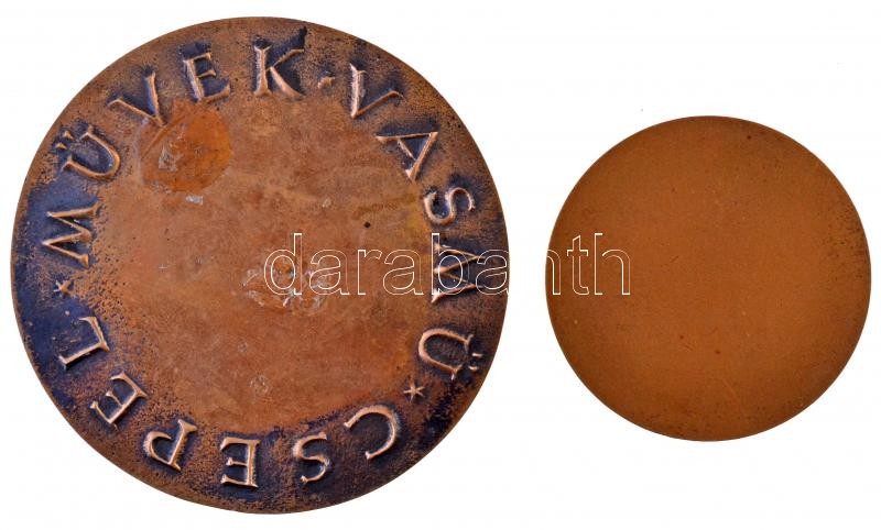 Leírás: 1967. Csepel Vas- és Fémművek 75 éves jubileum Br emlékplakett (60cm) + DN "Csepel Művek - Vasmű" Br plakett, hátoldalon ragasztónyom (91mm) T:2