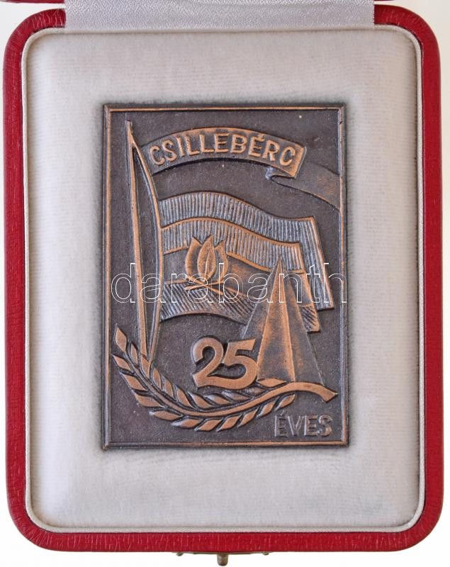Leírás: ~1973. "Csillebérc 25" Br plakett, eredeti dísztokban, hátoldalán gravírozva + jelvény (57x80mm) T:1-