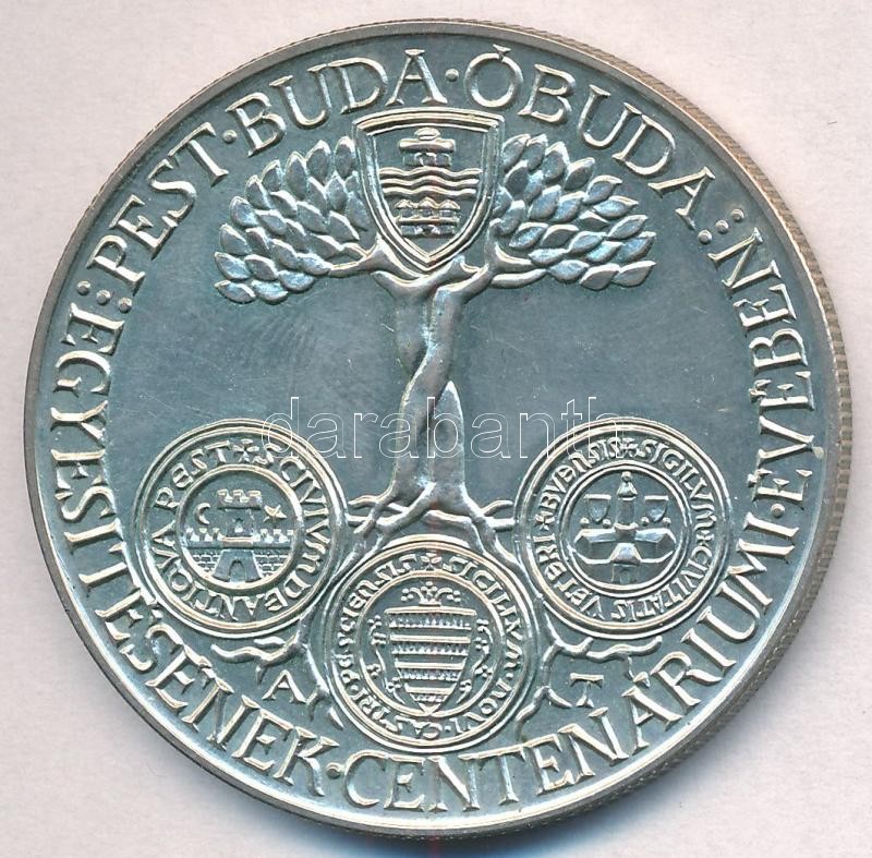 Asszonyi Tamás (1942-) 1973. "MÉE IV. Vándorgyűlése Budapest / Pest, Buda, Óbuda egyesítésének centenáriuma" Ag emlékérem (25,23g/0.800/42,5mm) T:1-