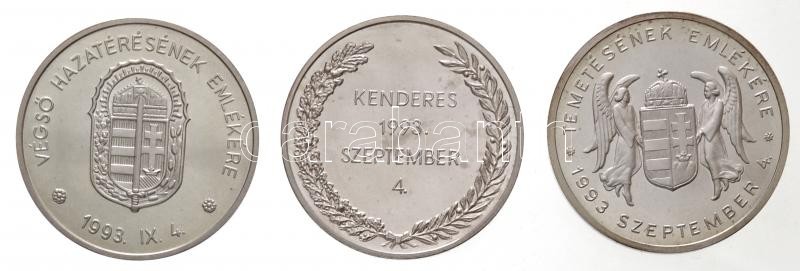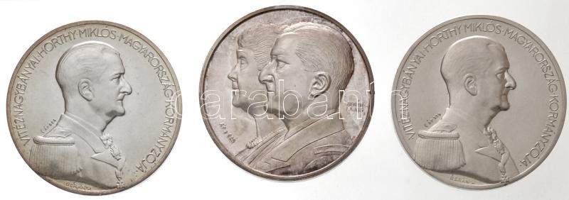 Berán Lajos (1883-1943) 1993. "Kenderes 1993. szeptember 4." Horthy Miklós és feleségének újratemetése emlékére, jelzett Ag emlékérem (32,50g/0.925/40mm) + "Vitéz Nagybányai Horthy Miklós Magyarország Kormányzója / Végső Hazatérésének Emlékére - Vitézi Jelvény" jelzett Ag emlékérem (32,46g/0.925/40mm) + "Vitéz Nagybányai Horthy Miklós Magyarország kormányzója / Temetésének emlékére 1993. szeptember 4." jelzett Ag emlékérem (32,31g/0.925/40mm) mindhárom együtt egy sérült dísztokban, tanúsítványokkal T:1-(PP) fo., patina
