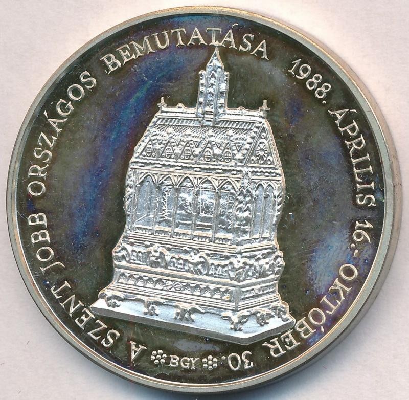 Leírás: Bognár György (1944- ) 1988. "A Szent Jobb országos bemutatása 1988. április 16. - október 30" Ag emlékérem (36g/0.835/42,5mm) T:1- (PP)