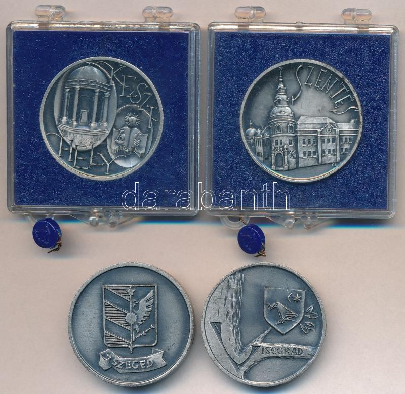 Leírás: DN "Keszthely" ezüstözött fém emlékérem, plombált műanyag tokban (32mm) + DN "Szentes" ezüstözött fém emlékérem plombált műanyag tokban (32mm) + DN "Szeged" ezüstözött fém emlékérem (32mm) + DN "Visegrád" ezüstözött fém emlékérem (32mm) T:1,2 kis patina, kis ph.