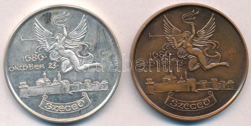 Leírás: Fritz Mihály (1947- ) 1986. "Szeged felszabadítása a török alól" Ag és Br emlékérempár (35,96g/0.835/42,5mm) T:1-(PP)