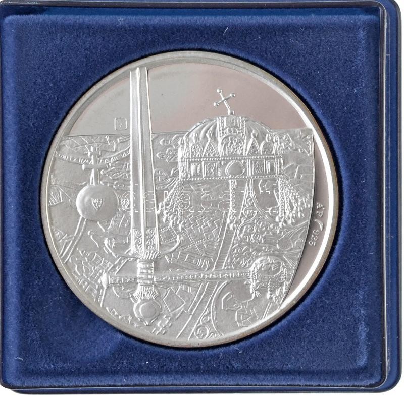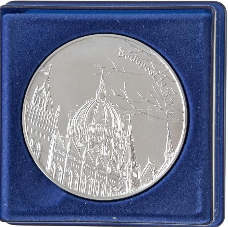 Leírás: Fülöp Zoltán (1851-) 1978. "Budapest - Parlament / Királyi szent ereklyék" Ag emlékérem tokban (27,16g/0.925/42,5mm) T:1(PP)