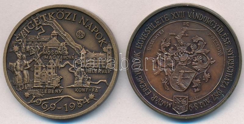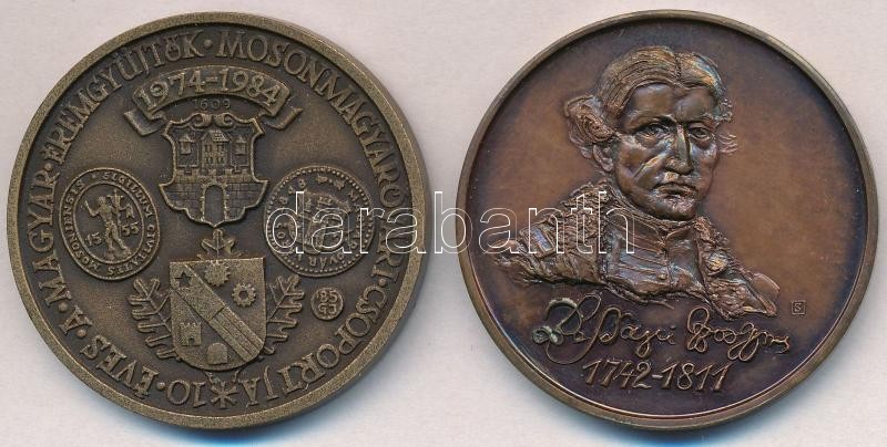 Leírás: Garamkeszi János (1936-) 1985. "MÉE Mosonmagyaróvári Csoport 10 éves / Szigetközi Napok" Br emlékérem (42,5mm) + Kelemen Kristóf (1922-2001) 1987. "Bessenyei György 1742-1811 / Magyar Éremgyűjtők Egyesülete XVII. Vándorgyűlése - Nyíregyháza" Br emlékérem (42,5mm) T:1-,2