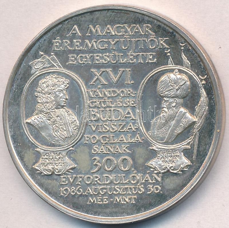 Leírás: Lapis András (1942-) 1986. "MÉE XVI. Vándorgyűlés / Buda visszafoglalásának 300. évfordulója" Ag emlékérem (36g/0.835/42,5mm) T:1- (PP) patina