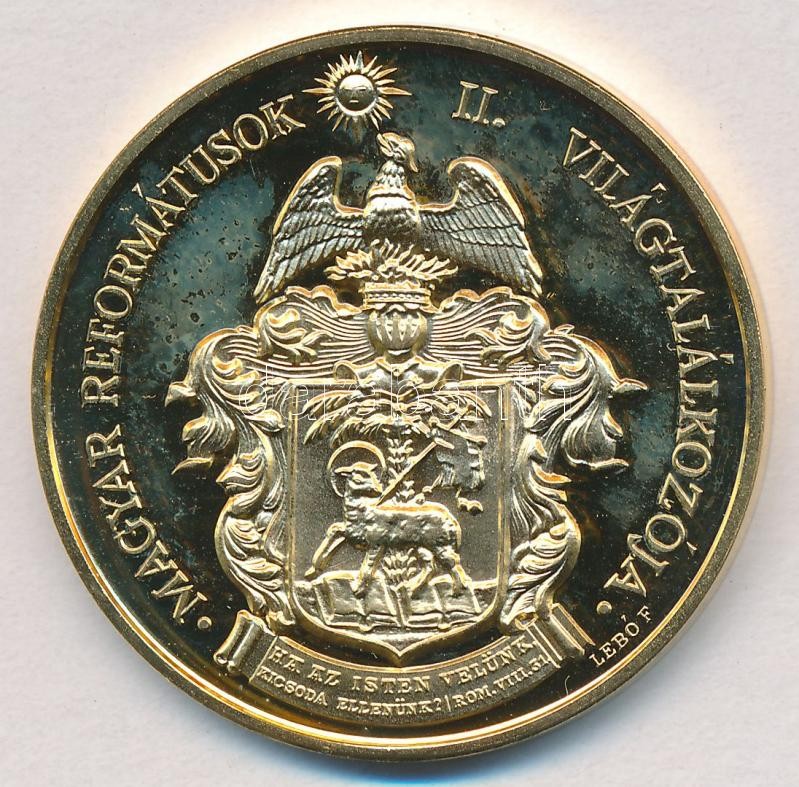 Leírás: Lebó Ferenc (1960-) 1991. "Magyar Reformátusok II. Világtalálkozója" aranyozott fém emlékérem (42,5mm) T:1-(PP) fo.