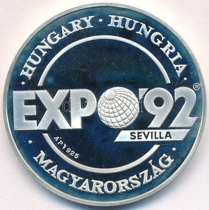 Leírás: Lebó Ferenc (1960-) 1992. "Expo '92 Sevilla - Magyarország / Európában, Európáért" jelzett Ag emlékérem dísztokban, tanúsítvánnyal (31,1g/0.925/42,5mm) T:PP