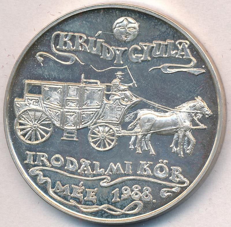 Leírás: Rajki László (1939-) 1988. "Krúdy Gyula / Irodalmi Kör MÉE 1988" Ag emlékérem (36g/0.835/42,5mm) T:1- (PP) patina
