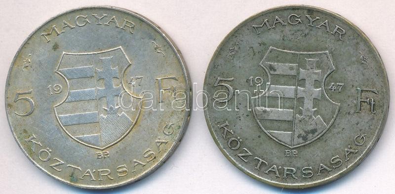 Leírás: 1947. 5Ft Ag "Kossuth" (2x) T:2-,3 patina