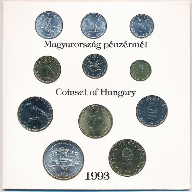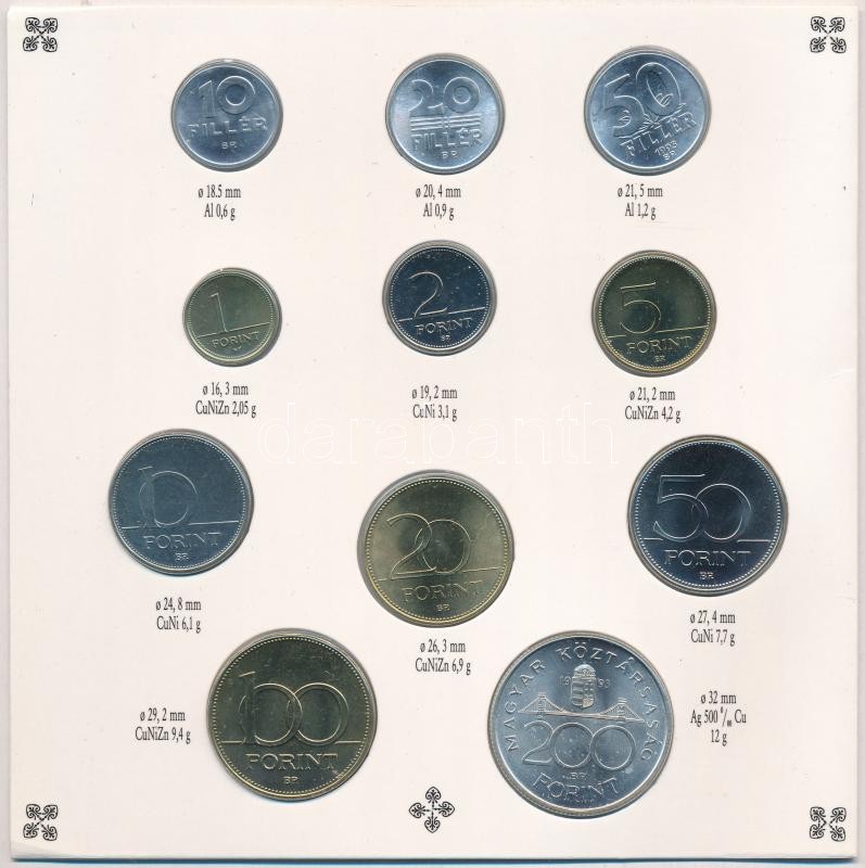 Leírás: 1993. 10f-200Ft (11xklf) forgalmi sor dísztokban, benne 200Ft Ag "MNB" T:BU
