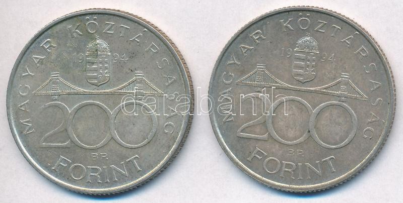 Leírás: 1994. 200Ft Ag "Deák" (2x) T:2 patina