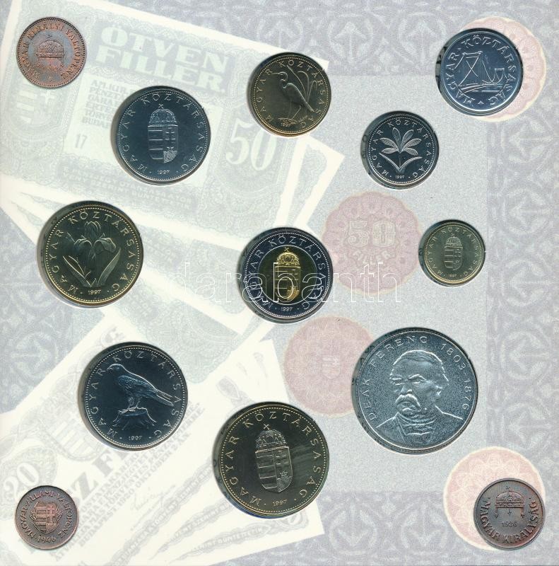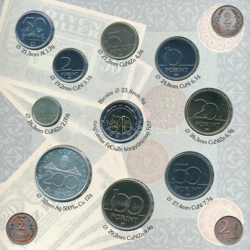 Leírás: 1997. 50f-200Ft (10xklf) forgalmi sor, benne 200Ft Ag "Deák", karton díszcsomagolásban T:BU
