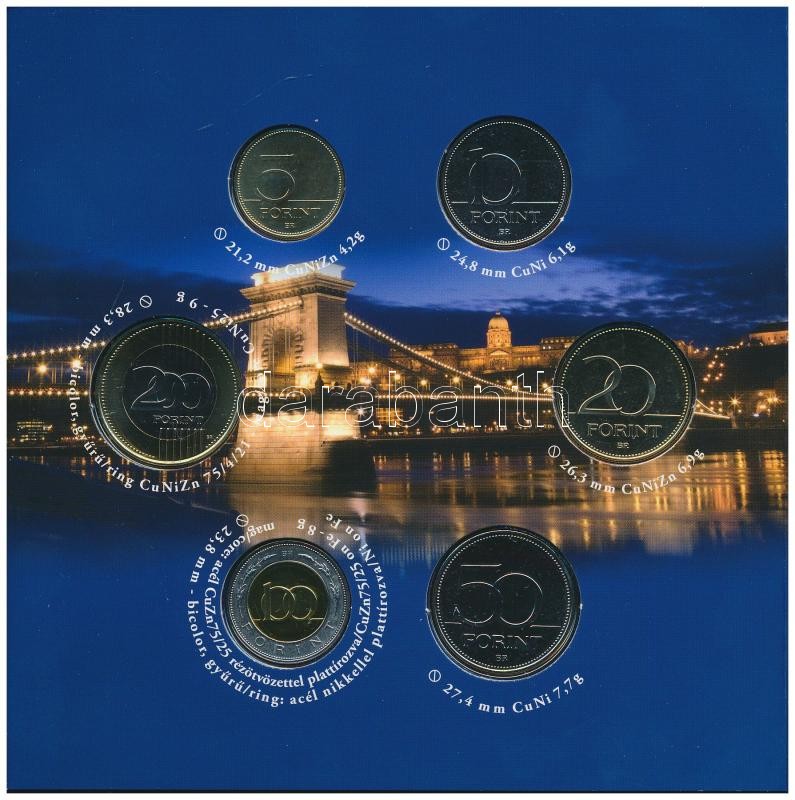 2009. 5Ft-200Ft (6xklf) dísztokos forgalmi szett "Lánchíd" T... https://www.darabanth.com/hu/303-Gyorsarveres/303.0/Numizmatika/Magyar-es-magyar-verdejelu-fem-es-ezustpenzek~300008/2009-5Ft-200Ft-6xklf-disztokos-forgalmi-szett-Lanchid-TBU--Adamo-FO43~II1599521