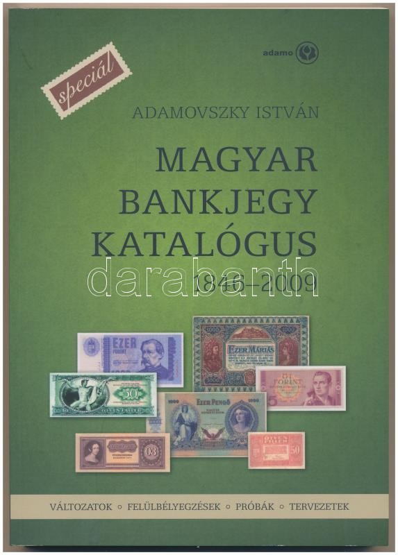 Adamovszky István: Magyar bankjegy katalógus SPECIÁL - változatok, felülbélyegzések, próbák, tervezetek. 1846-2009. Budapest, 2009. Első kiadás, Új állapotban