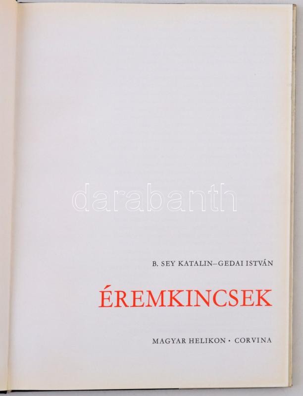 B. Sey Katalin - Gedai István: Éremkincsek - Magyar Nemzeti Múzeum Kincsei. Magyar Helikon, Corvina, Budapest, 1972. Borító erősen sérült, a könyv szép állapotú.