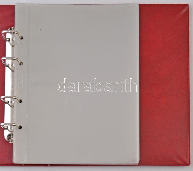 Leírás: Bordó gyűjtőalbum érmés és bankjegyes borítékok számára, 26 férőhellyel, nagyon szép állapotban.